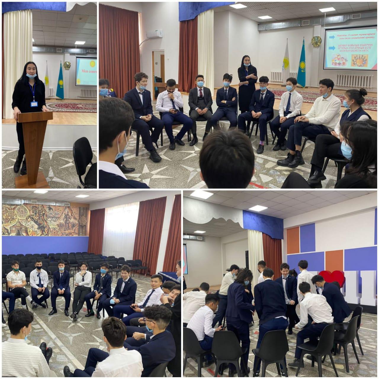 2022 жылдың 11 ақпан күні мектеп психологтары Д.Т Әлсейтова және Д.Д Тлеугазина 11 сынып оқушыларына «Бізді ҰБТ күтіп тұр» тақырыбында тренинг жүргізді.