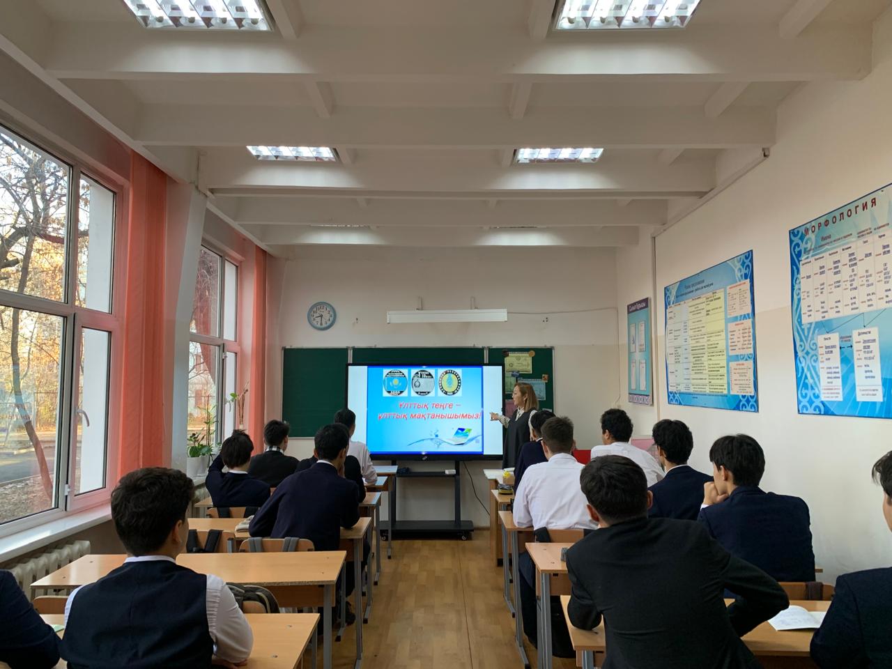 “15 қараша - Ұлттық валюта күні” тақырыбында тәрбие сабағы өтті. Сабақ барысында балаларға Қазақстан Республикасы егеменді, тәуелсіз, дербес мемлекет. Оның өз Ата заңы, мемлекеттік рәміздері ,ұлттық валютасы бар. Ол Қазақстан Республикасы көлемінде пайдаланылатын заңды төлем құралы. Ақша асыл қазына, халық байлығы екені туралы және еліміздің өмірінде теңге қандай маңызды рөл атқаратыны туралы айтылды.