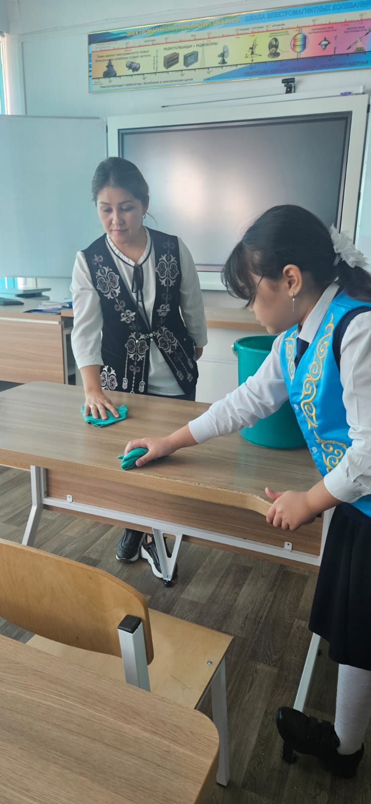 Қоршаған ортаға ұқыпты қарауға және өздерінің Кіші Отанына деген ықылассыз сүйіспеншілікке тәрбиелеу мақсатында мектепте «Таза бейсенбі» акциясы өткізілді, оның барысында оқушылар сынып жетекшілерімен бірге сыныпта тазалық жұмыстарын жүргізді. Достық ұжымымен сыныптар жұмысты үлкен ынтамен орындады.