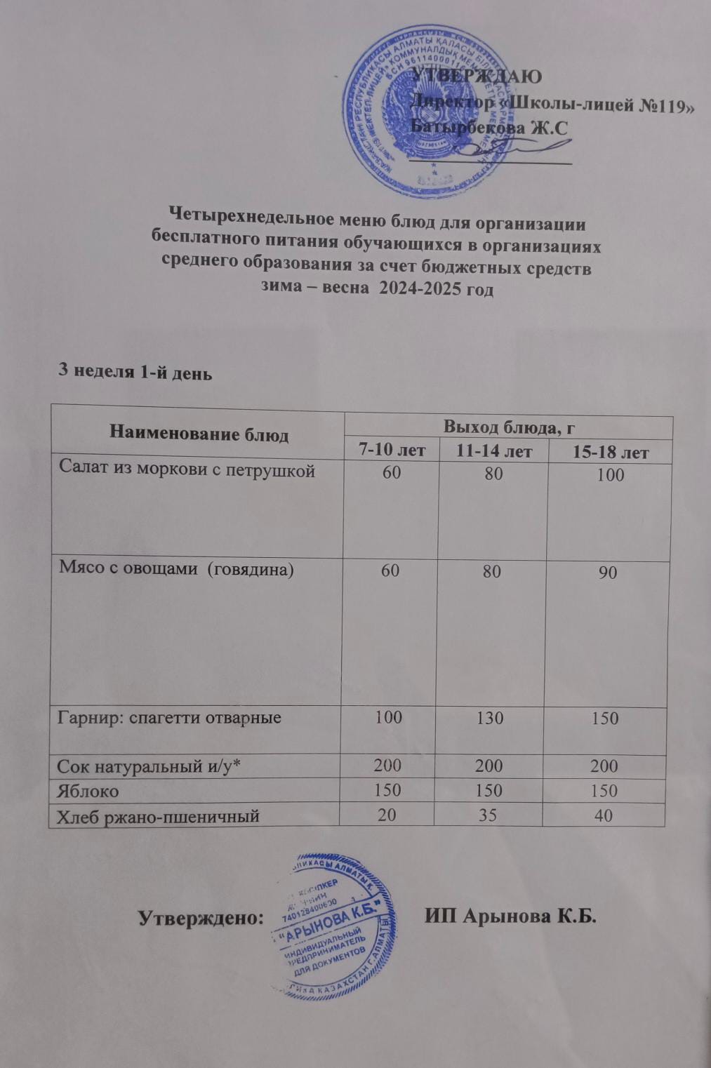 Ас мәзірі 2025-2026 оқу жылы