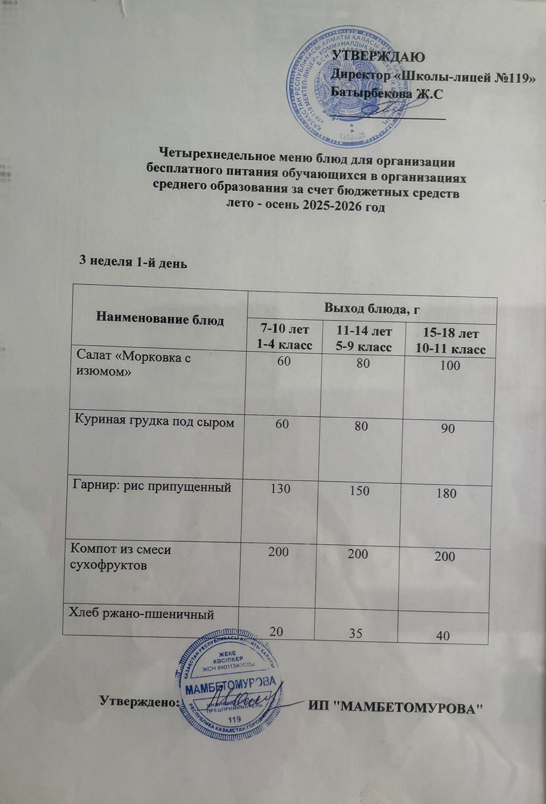 Ас мәзірі 10.09.2025