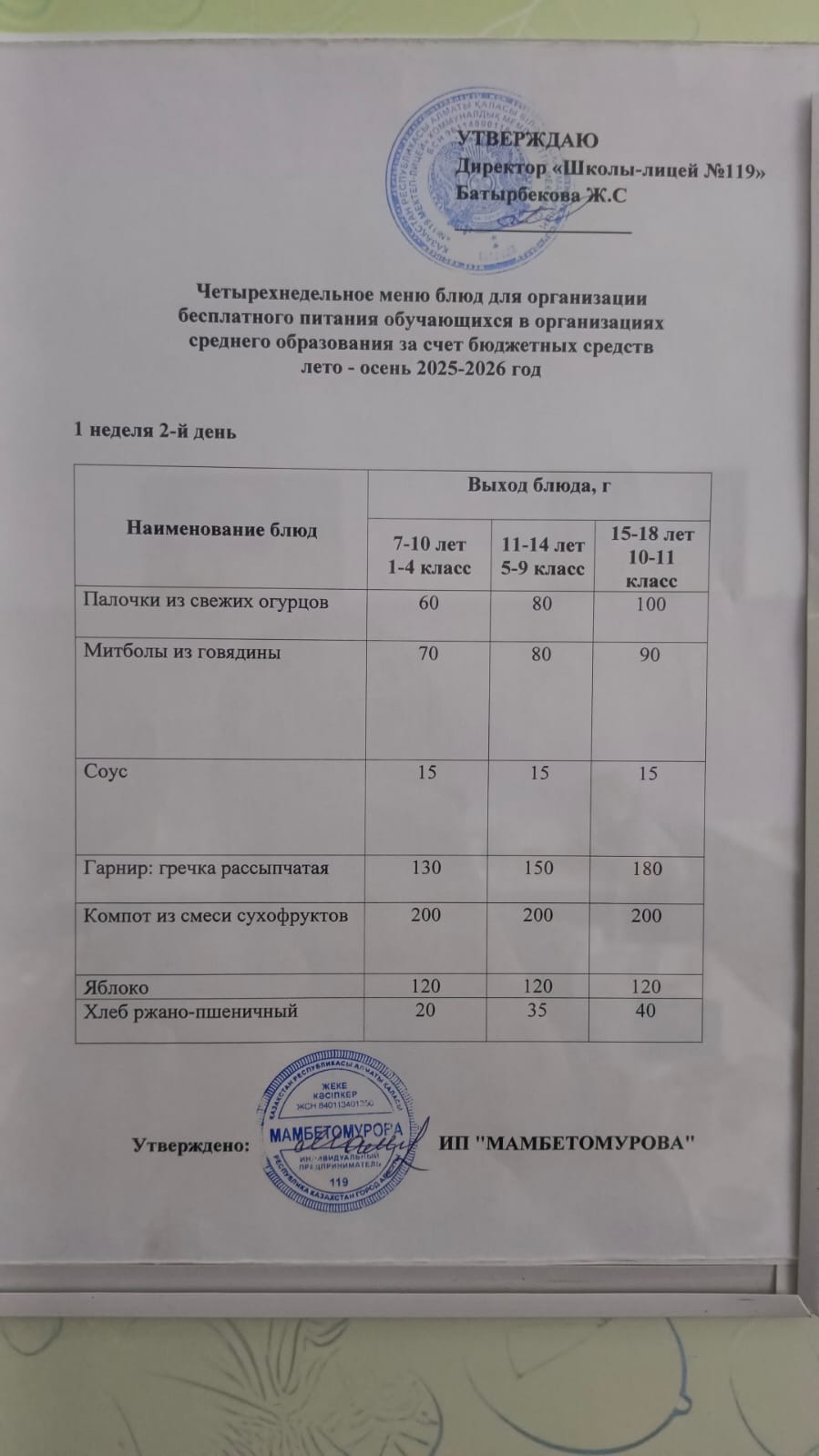 Ас мәзірі 16.09.2025ж
