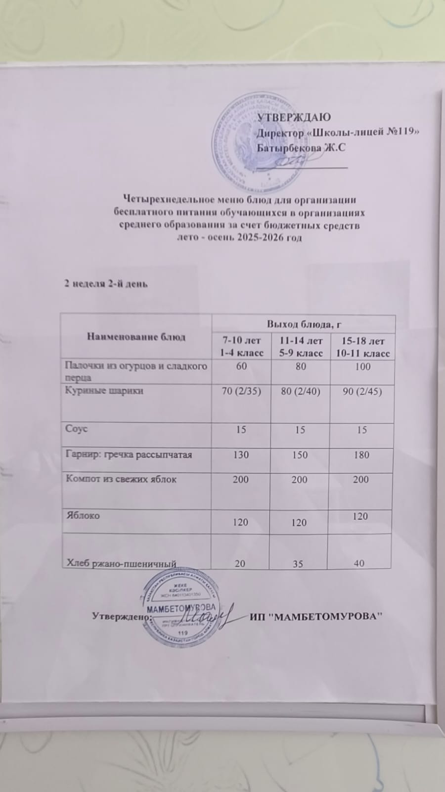 Ас мәзірі 11.09.2025ж