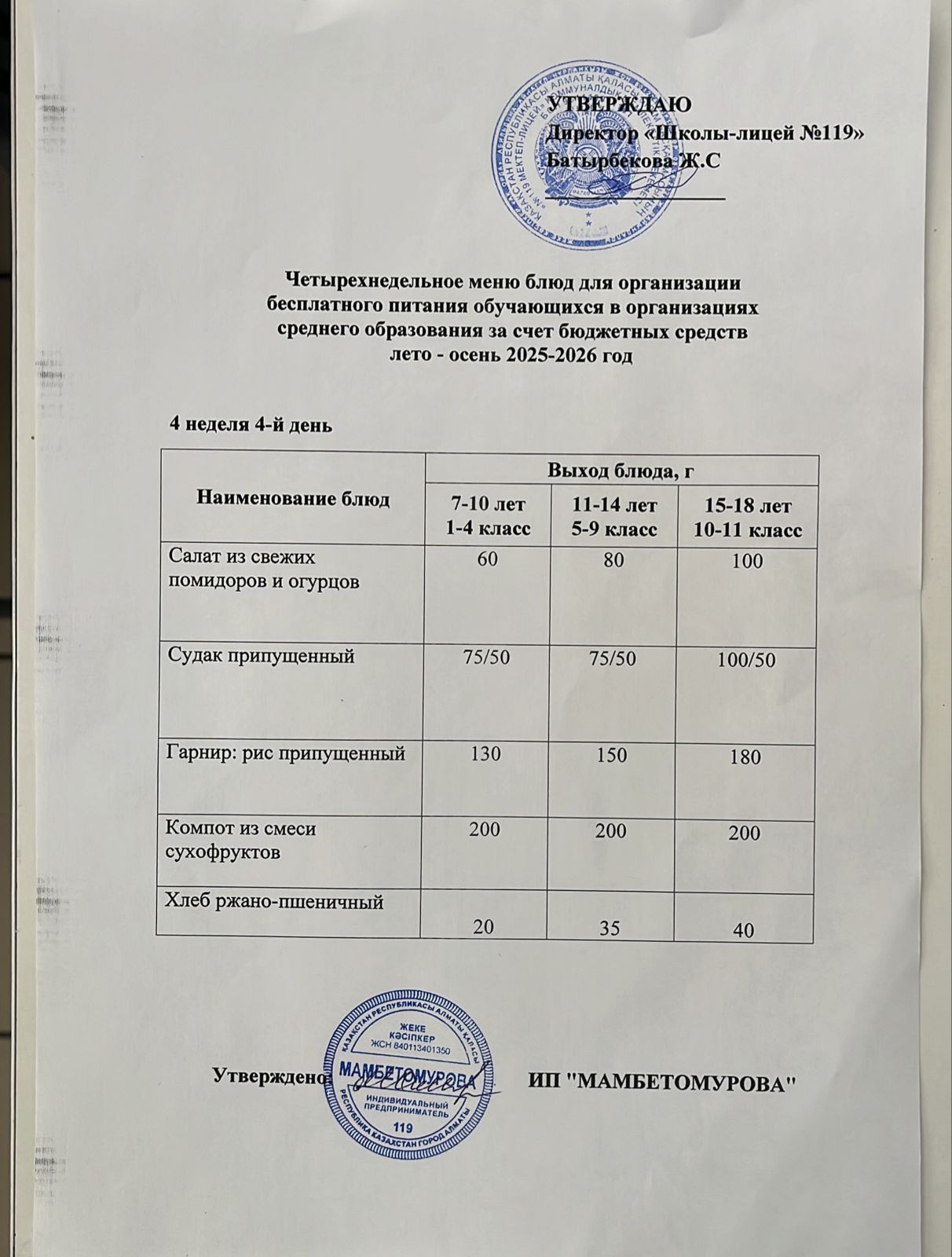 Ас мәзірі 23.10.2025ж