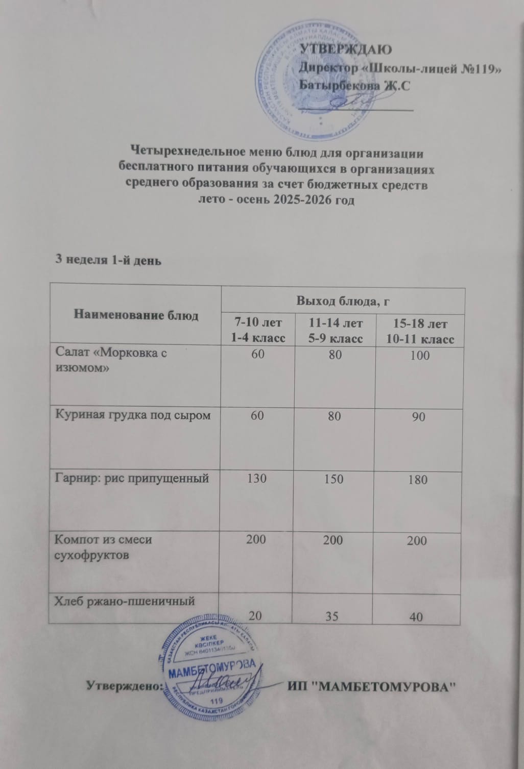 Ас мәзірі 19.11.2025ж