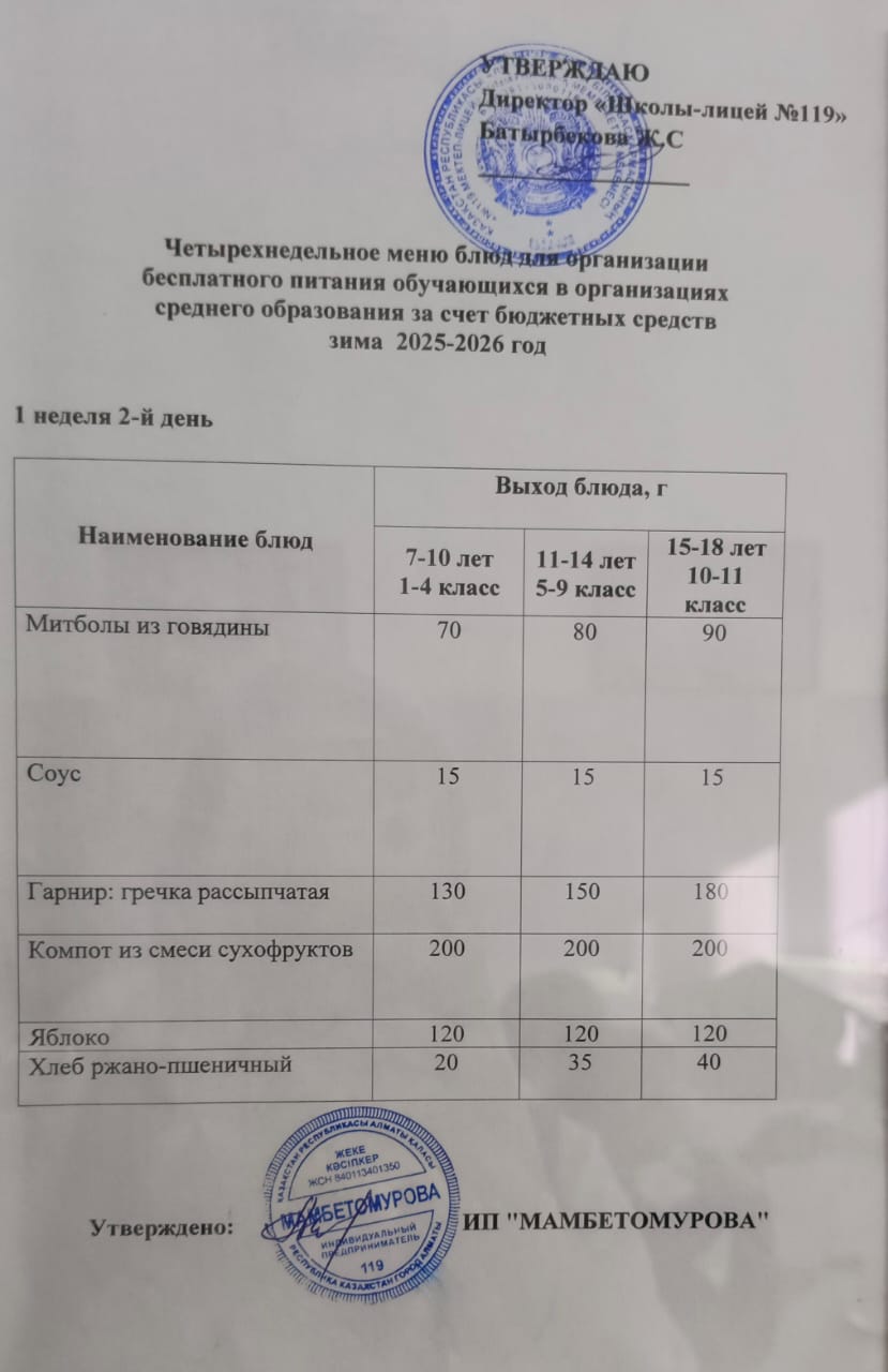 Ас мәзірі 2025-2026 оқу жылы