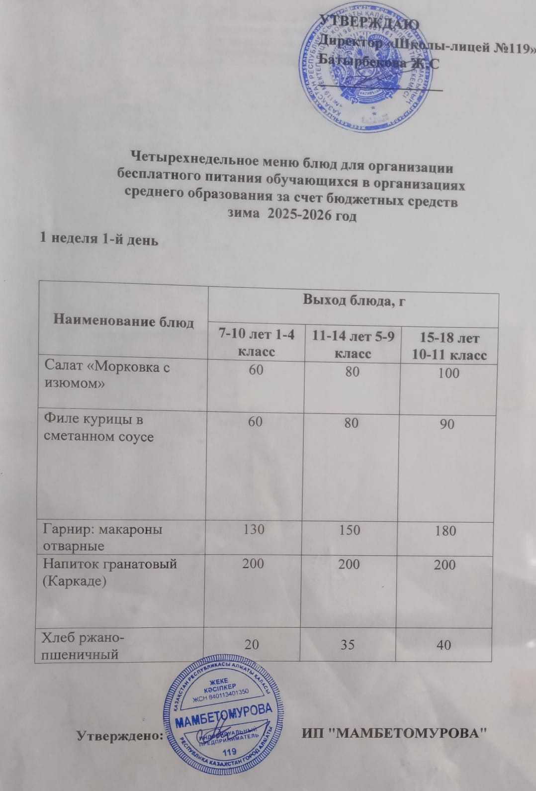 Ас мәзірі 19.11.2025ж