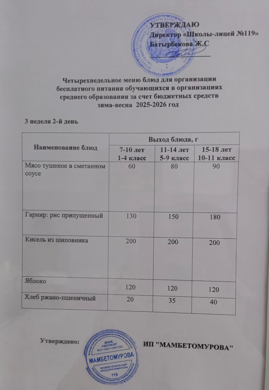 Ас мәзірі 2025-2026 оқу жылы