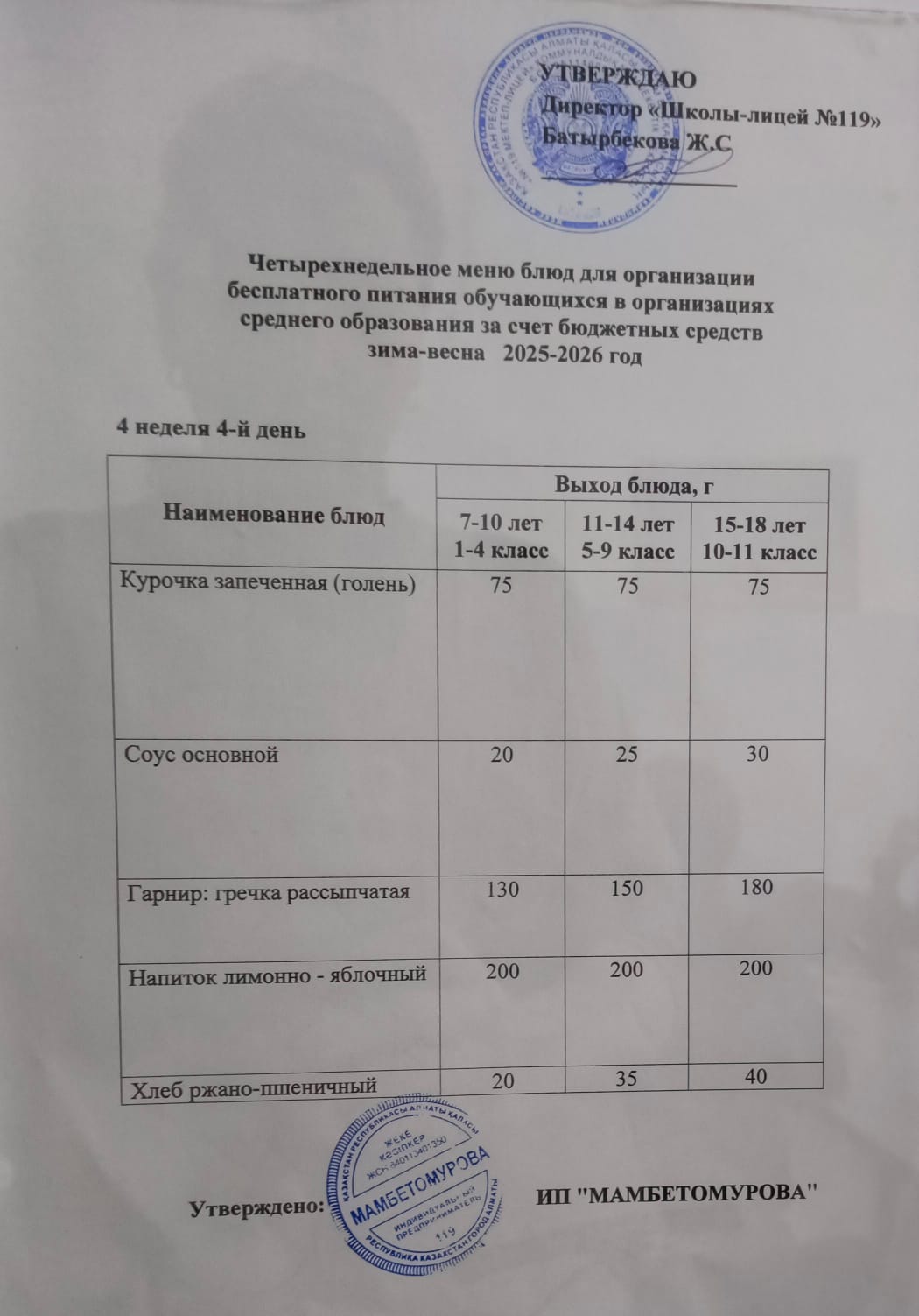 Ас мәзірі 2025-2026 оқу жылы