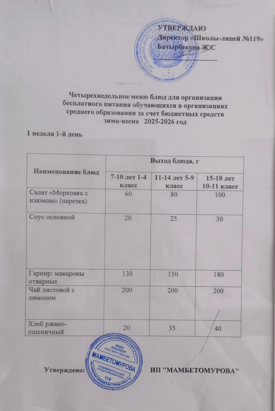 Ас мәзірі 2025-2026 оқу жылы
