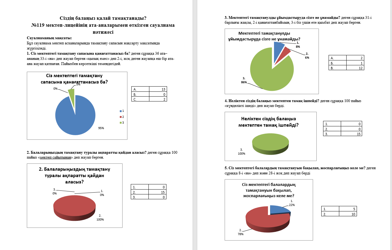 Оқушылардан алынған сауалнама